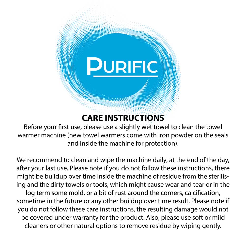 Wipe and dry the interior daily. Operate up to 8–10 hours per day and avoid leaving towels inside for more than 2 hours. A mild odour may occur when warming damp towels; keep the unit in a well-ventilated area.