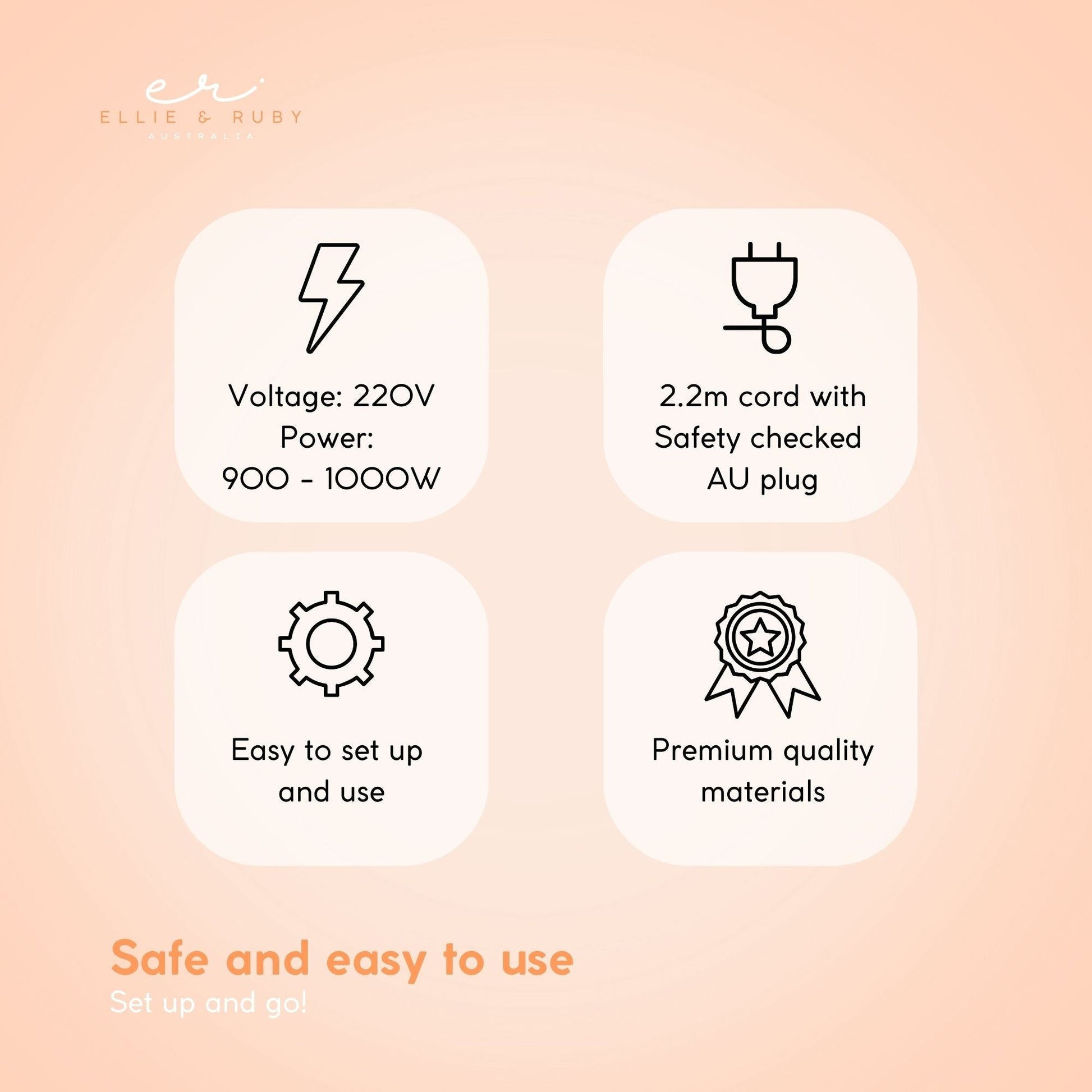 The Ellie & Ruby YC-106 Hair Dryer Accelerator is an ideal tool for professional hair styling, colouring, perming, and conditioning treatments. Designed for salon use, it features a free-standing base with omnirotational rolling wheels for easy movement and a 360° halo heating head for even heat distribution.