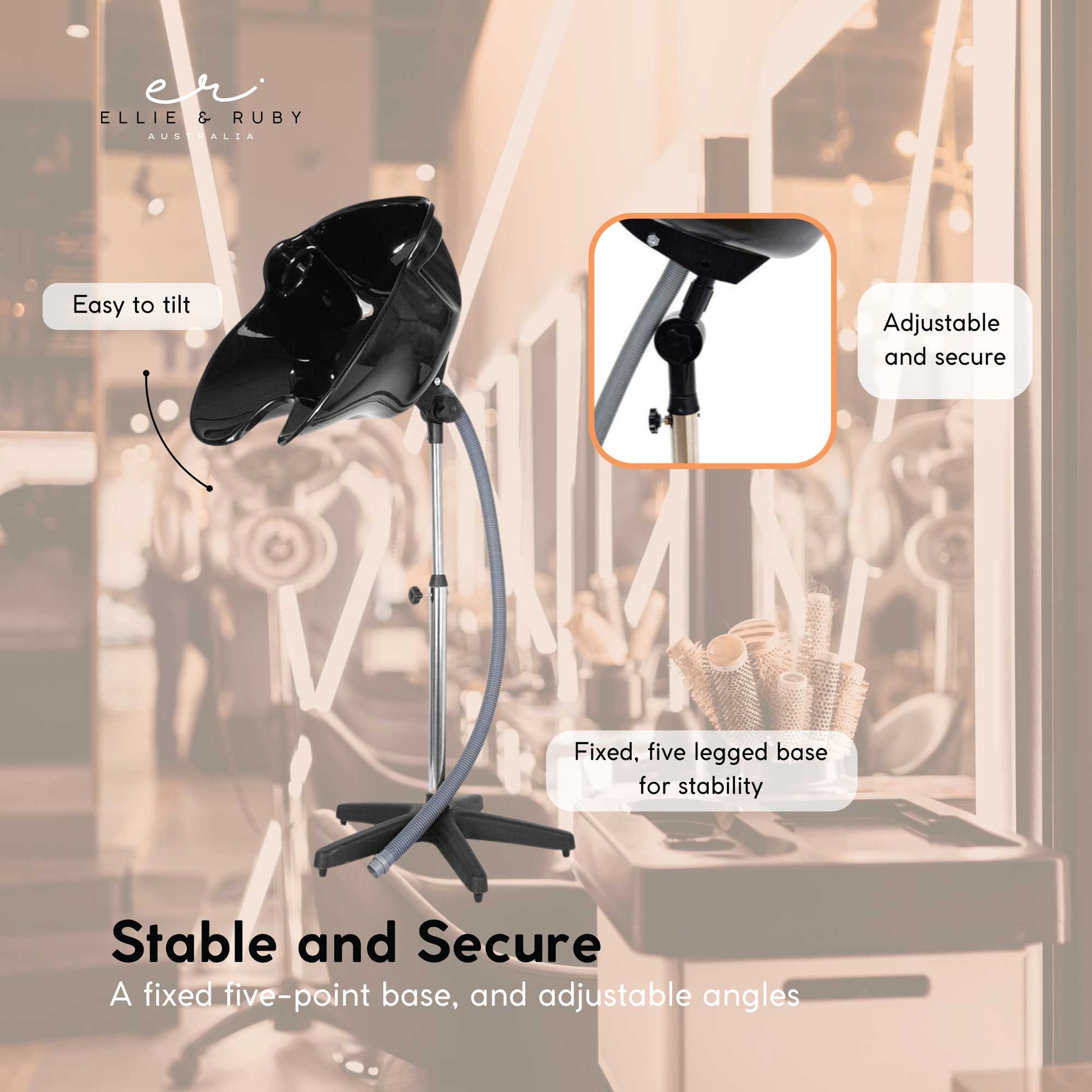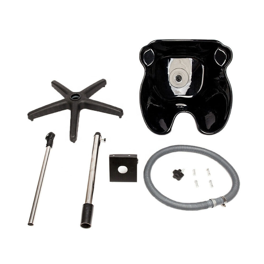 A large mobile hair washing basin designed for professional or home use. Ideal for salons, mobile hairdressers, or caring for clients with limited mobility. This portable basin combines practicality and comfort, featuring adjustable height and a stable five-point base to prevent movement during use.
