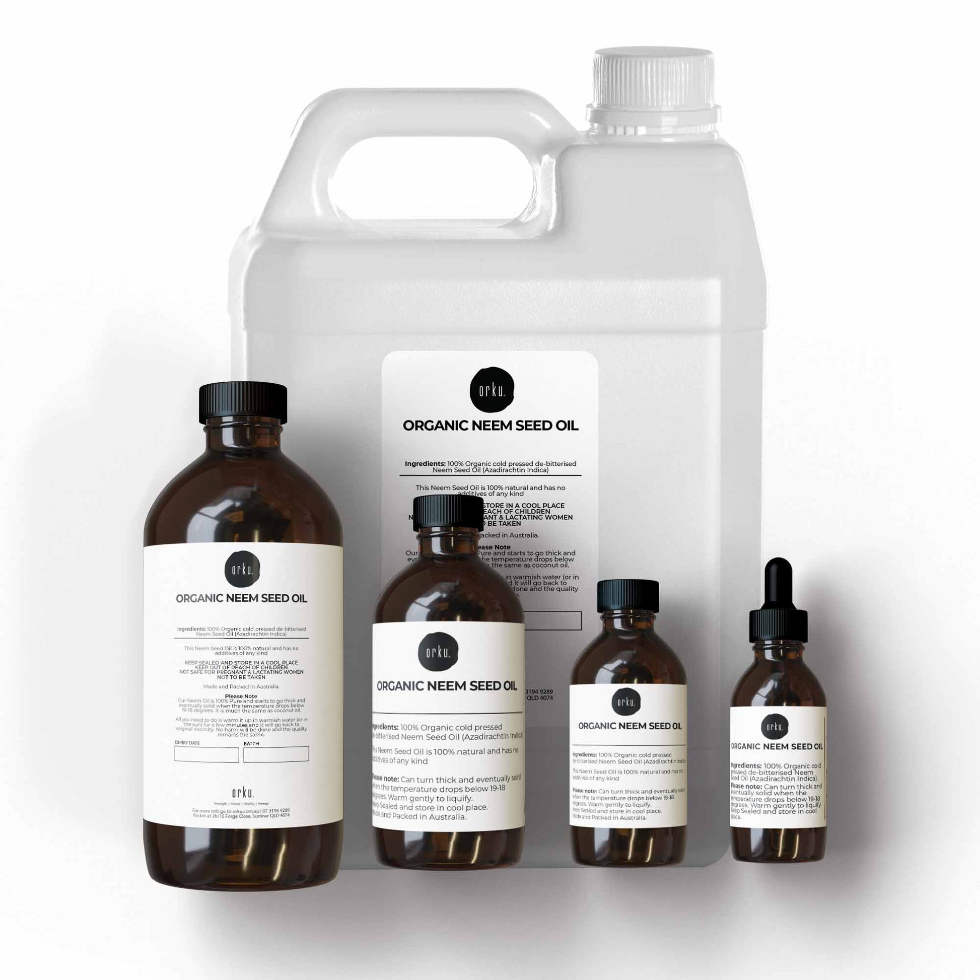 Orku Neem Seed Oil is a 100% pure, cold-pressed oil derived from the seeds of the neem tree (Azadirachta indica). This oil has been de-bitterised and is presented in its natural state with no added fragrance, preservatives, or solvents. Intended as a raw material, it is commonly used across a range of industries and non-food applications.