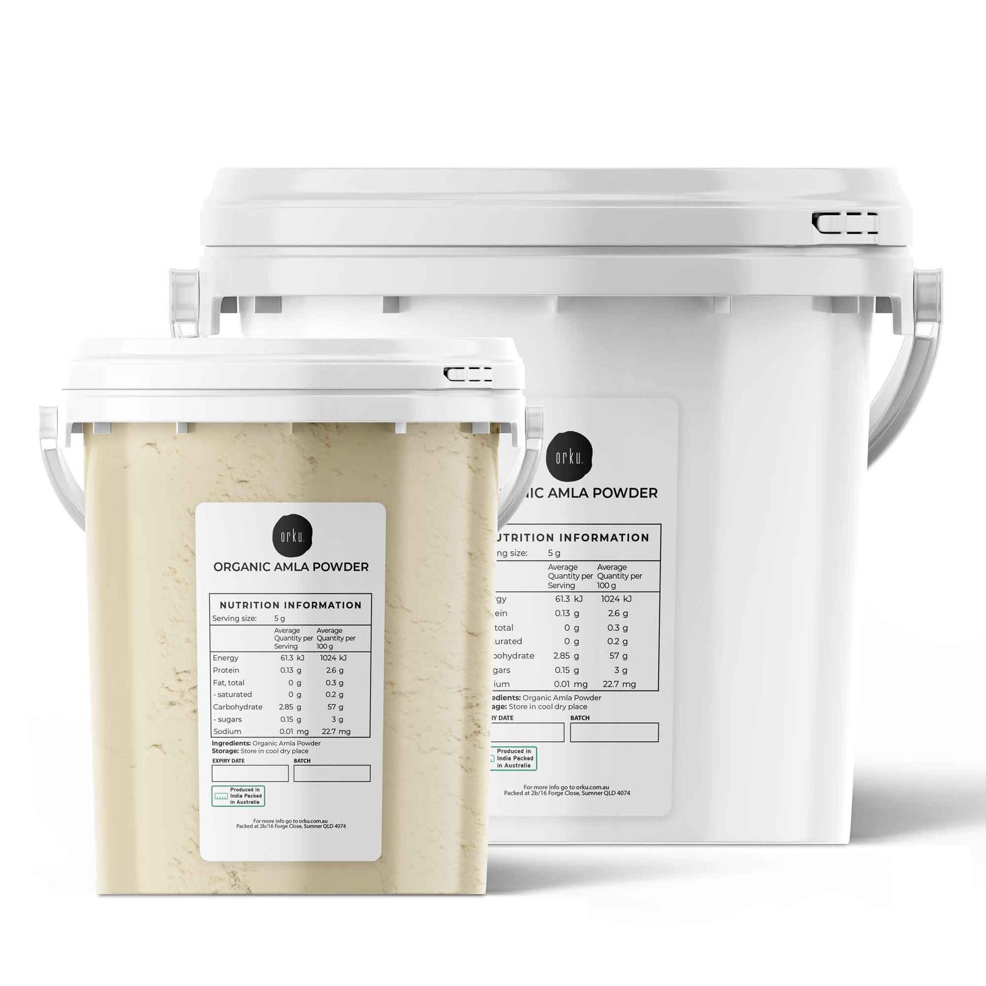 - Organic Alma Powder in resealable bucket.