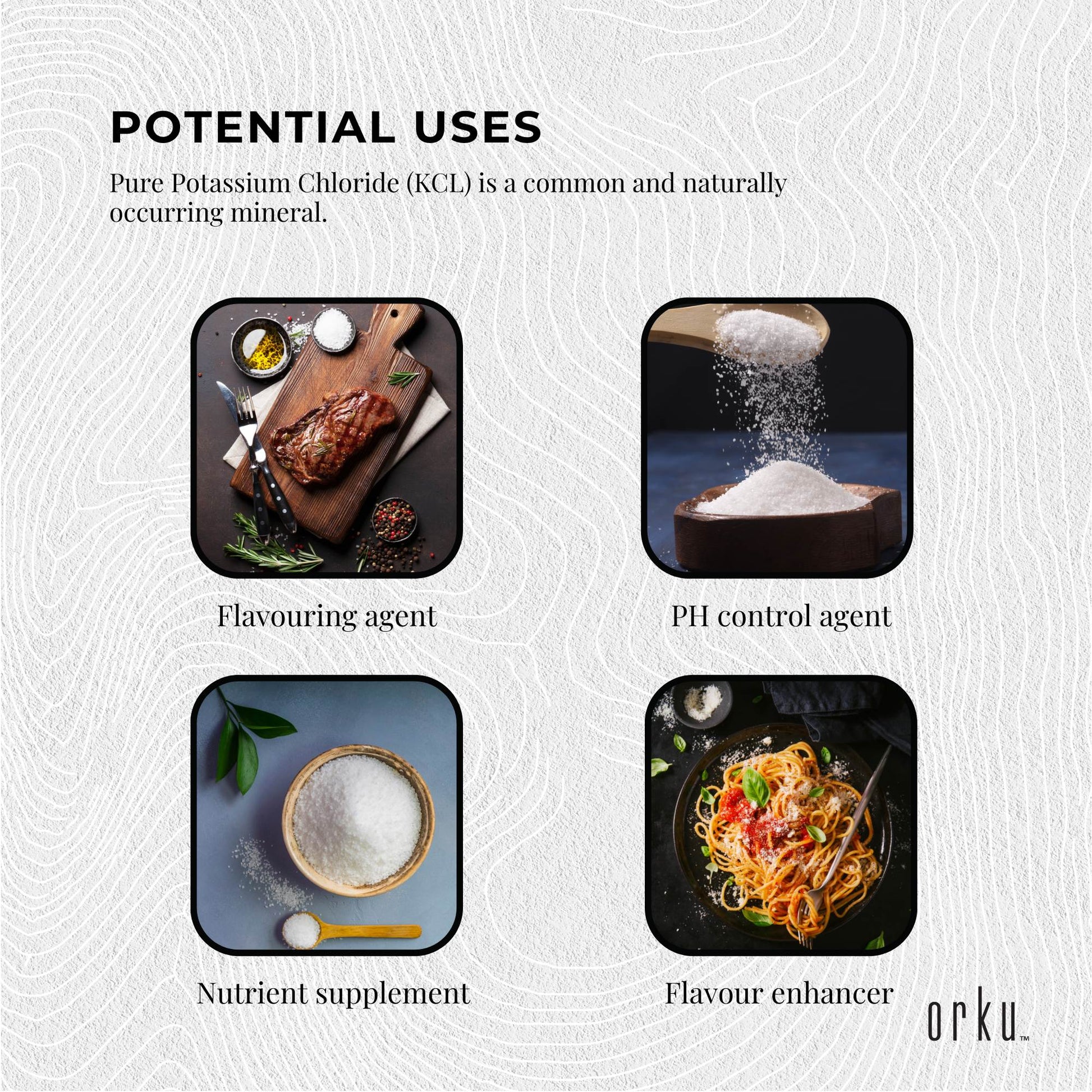 Orku Potassium Chloride Powder - Pure KCL E508 Food Grade Salt Replacer Bulk