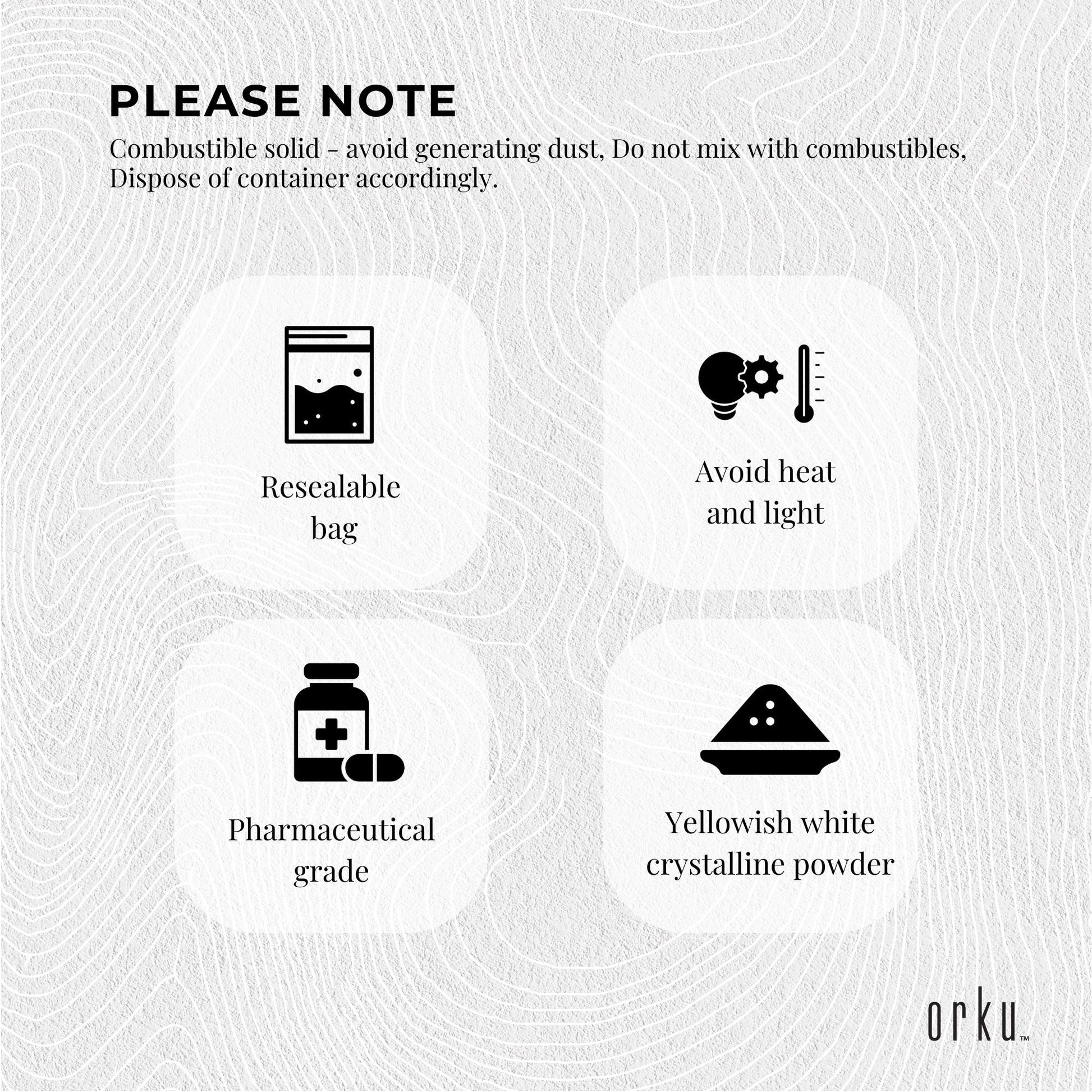 Pharmaceutical Grade Sodium Ascorbate Powder in resealable tub. 1G contains: 100% Sodium Ascorbate (Ascorbic Acid = 889mg, Sodium = 116mg)