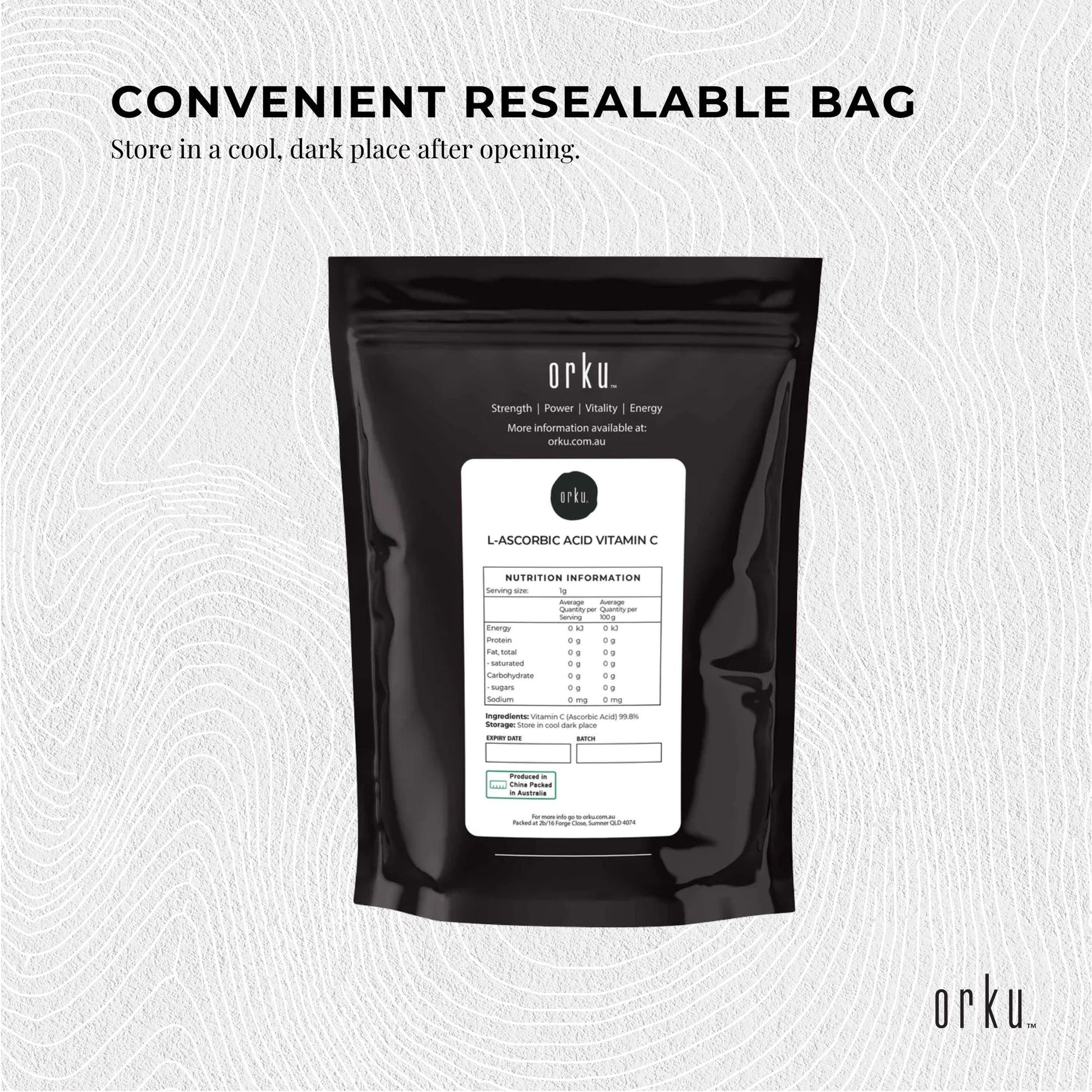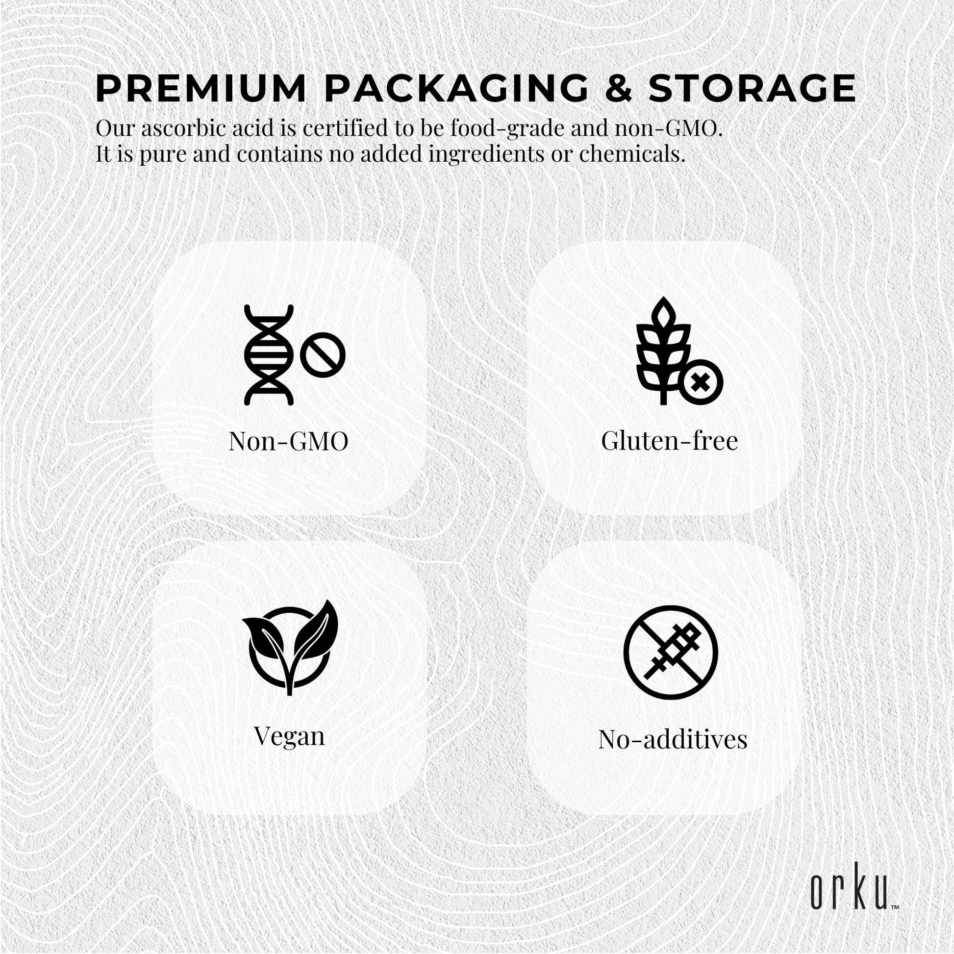 Orku Vitamin C Powder Pure L-Ascorbic Acid USP Grade Bulk Sizes